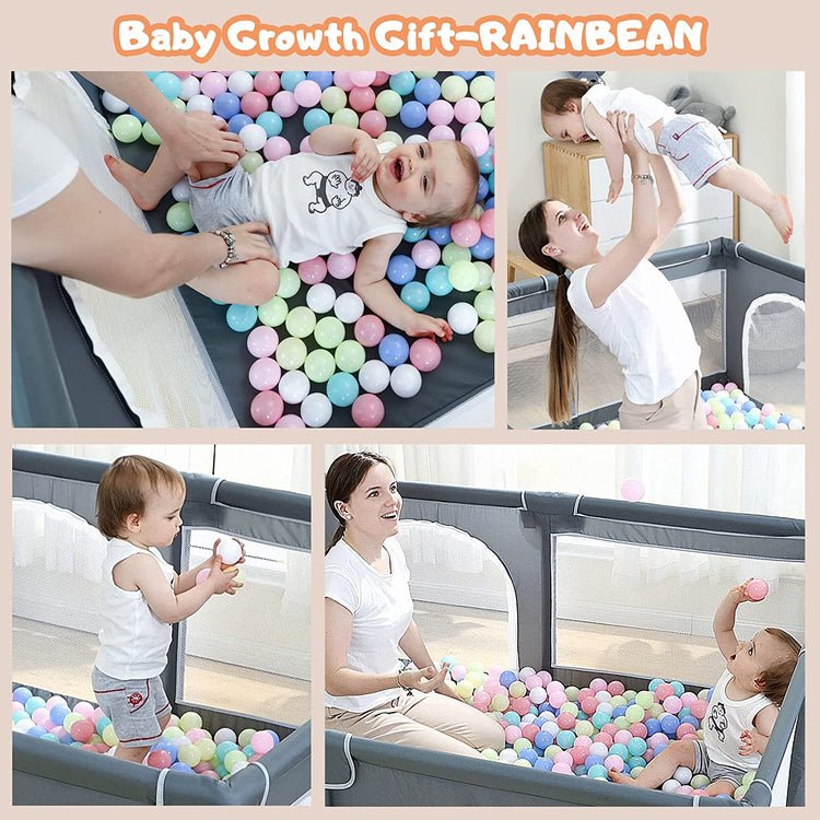 - RAINBEAN baby playpen makes a wonderfully huge and completely safe play area for the babies to explore, crawl, play and learn. Put some toys, ocean balls in the play pen and it will turn into an excellent play ground for your little ones.